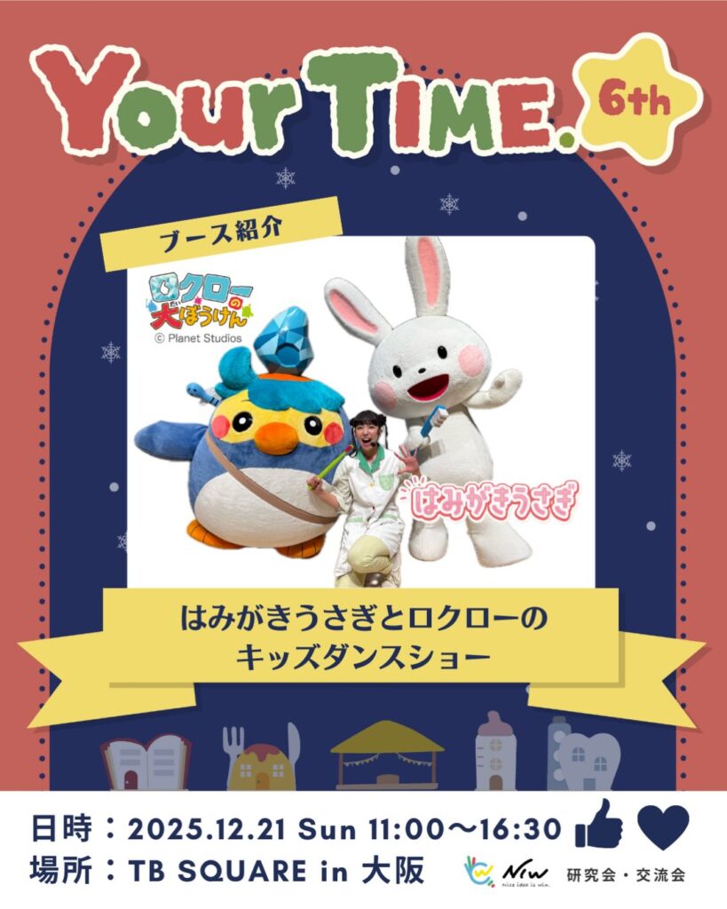 | 詳細 | 歯科医師主催!大阪初上陸! 「家族で遊んで学べる、1日限りの特別なクリスマス会」 おカタい医療イベントではなく、子どもから大人まで楽しめる新しい“お祭り” 医療・福祉・教育・健康など、各分野の専門家が創り上げる、笑って・学んで・健康になれる体験をぎゅっと詰め込みました! 今年の夏、東京・品川で894名が参加し、大盛況だった「Your TIME.」が、ついに大阪へ! 「行かない理由が見つからない」ほどのお得で楽しいコンテンツ満載です! 家族の思い出づくりにぴったりの、ちょっと特別な1日をお届けします! |