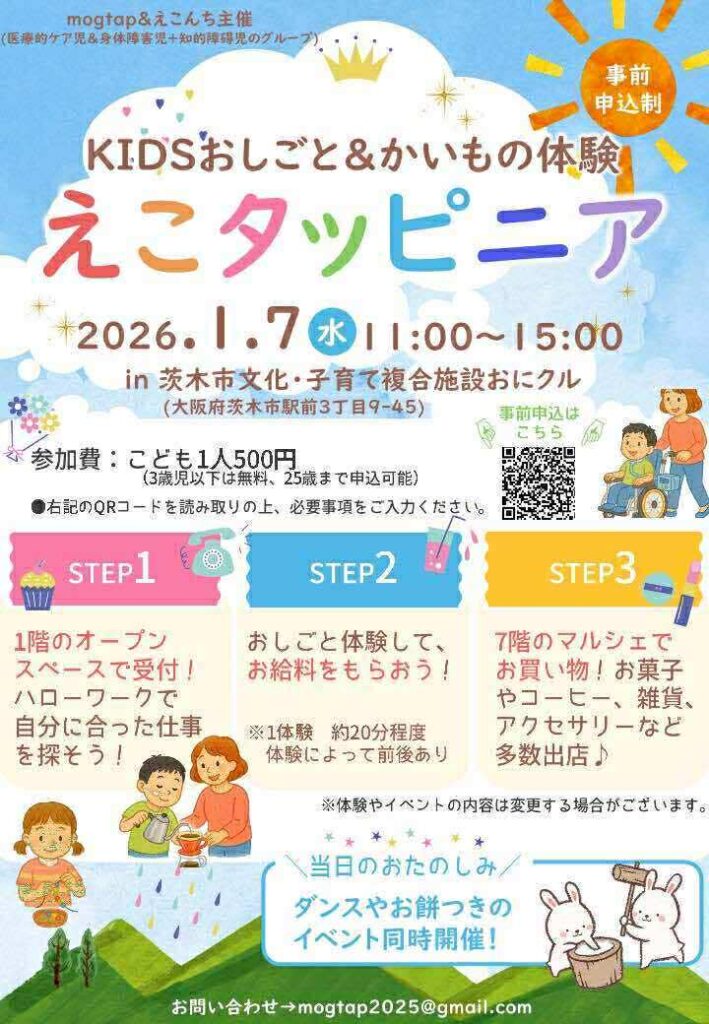 | 2026年 1月7日(水) | KIDSお仕事&お買い物体験『えこタッピニア』(大阪府茨木市)おにクル |